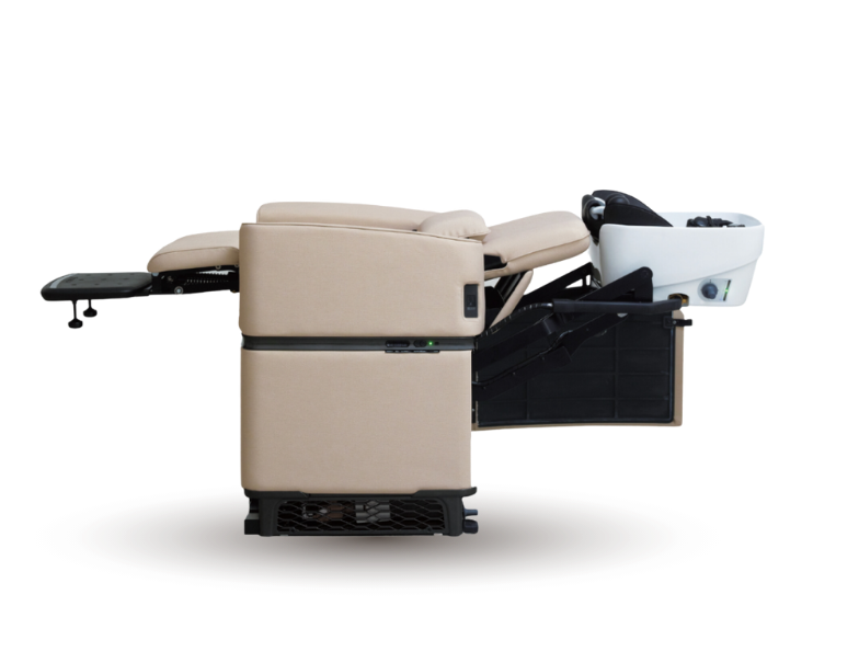 THE ONE – Der All-in-One Salonstuhl für maximale Effizienz – kombiniert elegantes Design mit innovativer Technik. Der Stylingsessel lässt sich vollständig in Liegeposition bringen, so dass Head Spa Behandlungen komfortabel für den Salonkunden durchgeführt werden können. Das integrierte motorisiertes Waschbecken lässt sich per Knopfdruck ein- und ausfahren – für ein völlig neues Maß an Flexibilität in der Salonplanung.
